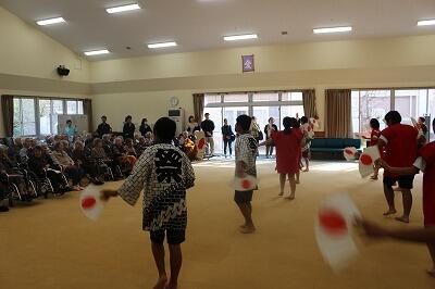 長遊園で利用者のみなさんにやっこ踊りを見ていただきました。