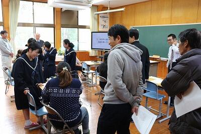 10月2日(金)5・6校時に高校説明会がありました。第1回目は都城聖ドミニコ学園高校、都城商業高等、日章学園高校、鳳凰高校の先生方においでいただき、各学校の教育方針・特色などの説明を聞ききました。