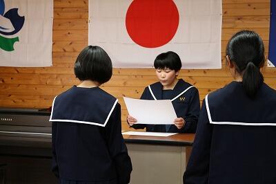 在校生代表からは、新入生へ「1,2、3年生のみんなで力を合わせてがんばりましょう」と「歓迎のことば」が送られました。
