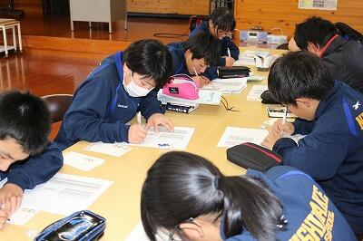 また、3校時目に「地震」を想定しての避難訓練を行いました。生徒からは、「避難訓練の時だけ意識して行動するのではなく、突然地震が起きた時のことを考えて、普段から意識して行動できるようにしたい」という感想がありました。