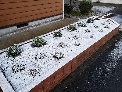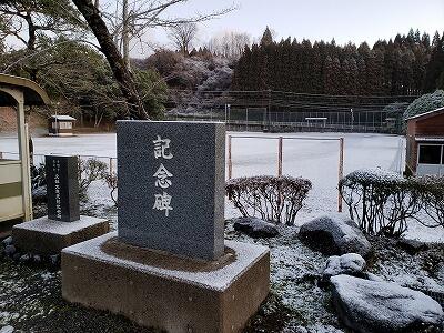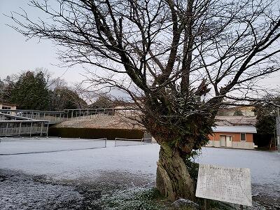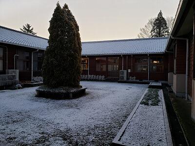 昨夜降った雪が今朝まで残り、学校が雪景色