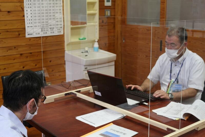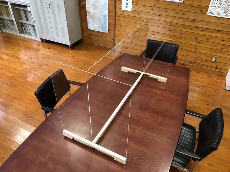 校長室には、校長先生特製のアクリルパーテーションが置かれています。