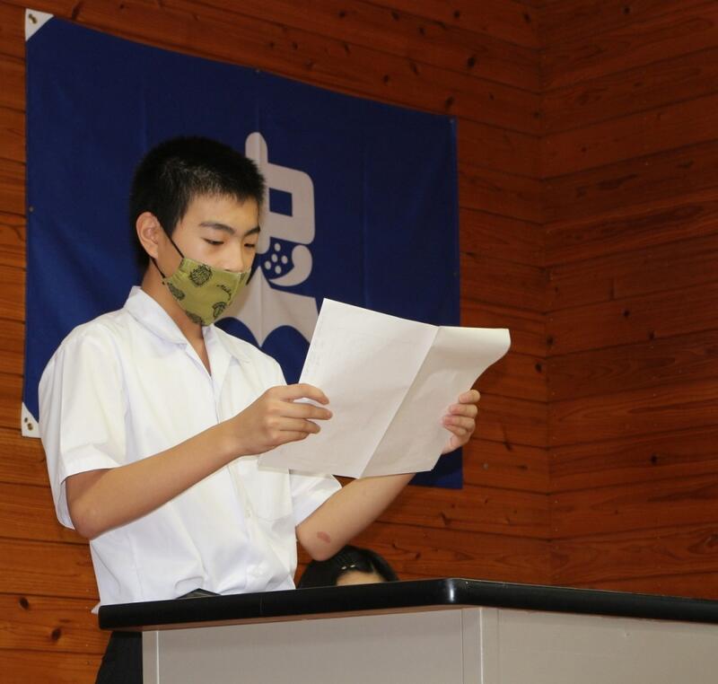 「新入生誓いのことば」では、生徒代表が「勉強と部活をがんばりたい」という決意を述べました。
