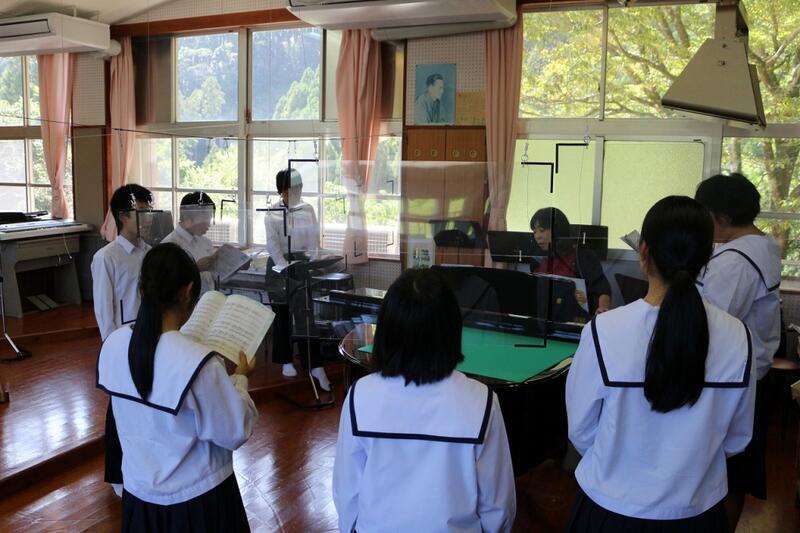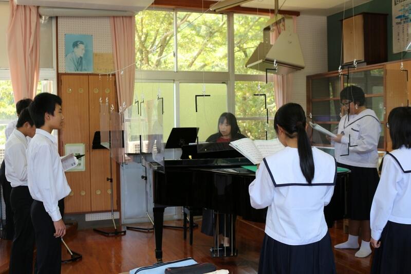 10月18日(日)に開催されるカルチャーフェスタに向けて、生徒たちは合唱や劇の練習に取り組んでいます。音楽室には、パーテーションが取り付けられ、コロナウイルス感染拡大防止に努めながら、歌の練習に励んでいます。