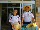 ☆「長遊園」では、ゴーヤの収穫を手伝いました。麦わら帽子がよく似合っていますよ。