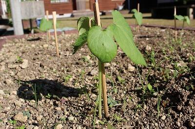 オクラの苗も大きくなっています。現在約15センチほどに成長しました。