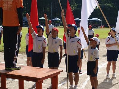 各団に分かれての応援の練習も始まりました。小学生も中学生も協力して頑張っています。先生たちも一緒になって応援の練習を盛り上げています。