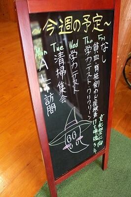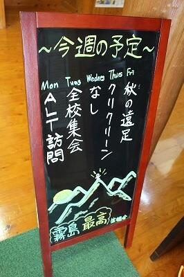 生徒会の活動として、毎週、玄関の看板を書き換えています。生徒玄関と正面玄関に設置してあります。お客様にはよく感心されて好評です。