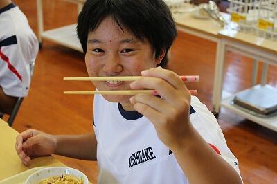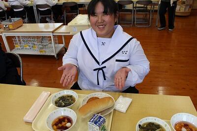 今日は久しぶりに給食がありました。今日のメニューは「ご飯、ちぎり天と野菜の炊き合わせ、ほうれんそうのアーモンド和え」でした。給食があるとお昼が大変助かります。久しぶりの給食に、生徒たちの笑顔があふれていました。美味しかったね!