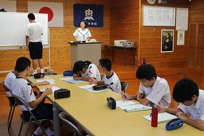 今日は登校日でした。近年は夏休みが短くなり、登校日も一回にしている学校が多くなりました。久しぶりに生徒たちの(病欠が一人、クラブチームの大会に参加が一人いましたが)顔が見れてうれしい気持になりました。全校集会の後、各学級で担任の先生からお話があったり、夏休みの課題の点検をしたりしました。課題の進んでいない生徒は少し焦っている様子でした。夏休み終了と同時に課題も終わるようにがんばって欲しいですね。
