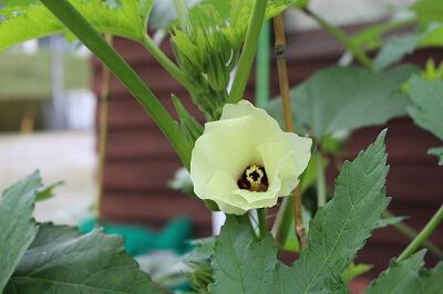 オクラの花は一日で終わります。短い命です。でもその後には小さなオクラの赤ちゃんがつぼみのようにできています。楽しみです。