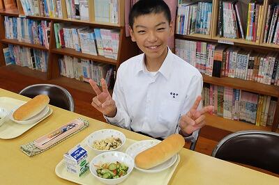 今日の給食のメニューは、「黒糖パン、彩り野菜スープ、トマトグラタン、青豆サラダ」でした。メニューも多くて練習で空腹になったお腹にちょうどよかったです。