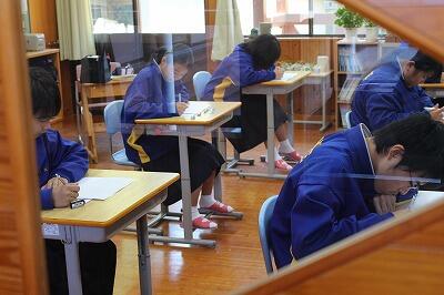 さて、中学校3年生は、今日から第3回目の実力テストが始まりました。今日は、国語、英語、理科の3教科が行なわれました。3年生にとっては大切なテストです。がんばれ3年生!