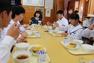 本日10月9日(金)の給食メニューは、手巻き寿司・豚汁です。手巻き寿司は、東小のリクエストメニューだそうです。西岳中全校生徒17名みんな元気です。手巻き寿司に少々苦戦していますが・・・