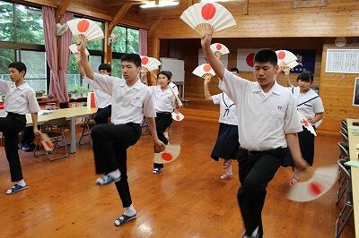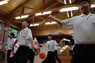 今週の4日(木曜)と5日(金曜)は、御池青少年自然の家で宿泊体験学習があります。その時の出し物で「奴21」を披露します。昼休みに2、3年生が1年生に指導しています。楽しみです。「奴21」は西岳中学校の踊りだそうです。