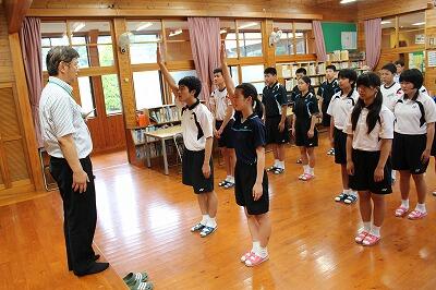 西岳は、昨夜からずーと大雨が降り続いています。今日も断続的に激しい雨が降り続け、災害が起きないか心配なほどでした。大雨の中、1学期の終業式が行なわれました。それぞれの学年の代表が1学期を振り返り、良かったことや課題点を確認しました。