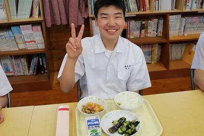 今日は1学期最後の給食、メニューは「ご飯、肉じゃが、酢の物」でした。1学期間、美味しい給食をありがとうございました!
