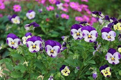 中庭のツリーの根元に、いつの間にか薄紫の花が咲いていました。いつ咲いたのか気がつきませんでした。
