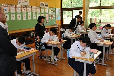 今日は、南部教育事務所の明松指導主事をはじめ、都城市教育委員会の先生方が来校し、生徒たちの学校生活の様子を理解していただきました。1年生は音楽、2年生は数学、3年生は理科の授業です。生徒たちはいつもどうり落ち着いた態度で授業に臨んでいました。今後もご支援・ご指導を賜りますようお願いいたします。