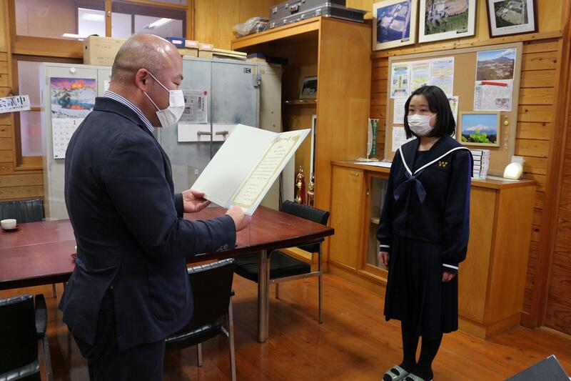 2月22日(火)ボランティア活動の参加、生徒会長や体育大会副団長としての活躍が認められ、都城市ロータリークラブから優良生徒として表彰されました。