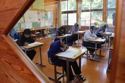 さて、中学校3年生は、今日から第3回目の実力テストが始まりました。今日は、国語、英語、理科の3教科が行なわれました。3年生にとっては大切なテストです。がんばれ3年生!