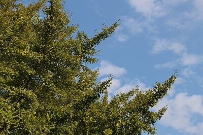 秋がだんだん深まって、西岳小学校の銀杏の木も、少しずつ緑から黄色っぽくなってきました。