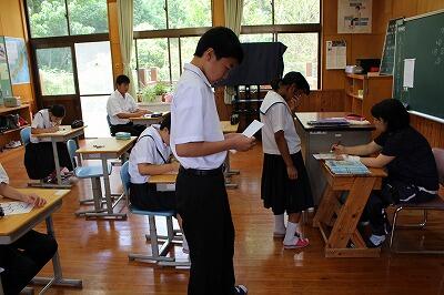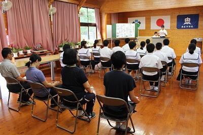 今日は登校日でした。近年は夏休みが短くなり、登校日も一回にしている学校が多くなりました。久しぶりに生徒たちの(病欠が一人、クラブチームの大会に参加が一人いましたが)顔が見れてうれしい気持になりました。全校集会の後、各学級で担任の先生からお話があったり、夏休みの課題の点検をしたりしました。課題の進んでいない生徒は少し焦っている様子でした。夏休み終了と同時に課題も終わるようにがんばって欲しいですね。