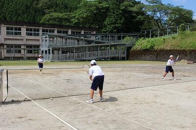 お盆休みが終わって部活動が再開しています。次の目標は秋の中体連大会です。ソフトテニス部は、3年生が引退してから2年生一人、1年生三人の四人になりました。少ない人数ですが、暑さに負けずにがんばっています。まだまだプレーが思うようにいかないようです。「ねばり強く!」とか「切れるなよ!」顧問の先生の声が聞こえてきます。皆さん!応援してください!バドミントン部の様子は後日お伝えします。