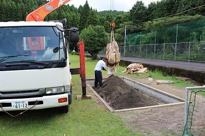 運動場では砂場の工事が行なわれています。以前からあった砂場をきれいにしていただきました。