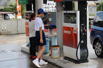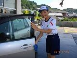 ☆「徳石石油」では、お客様の車の窓拭きなどのサービスを手伝いました。
