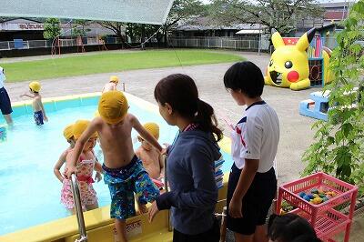 ☆「わかば保育園」では、園児と一緒に運動したり、プールで水遊びをしました。