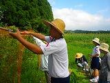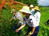 ☆「長遊園」では、ゴーヤの収穫を手伝いました。麦わら帽子がよく似合っていますよ。