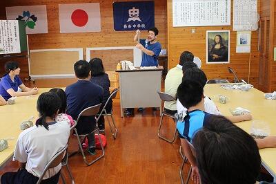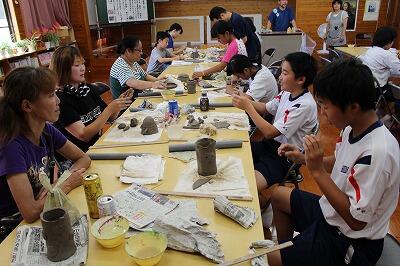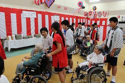 午前中は、太郎窯さんに講師をお願いして、家庭教育学級の催しで、陶芸を楽しみました。親子で参加している家庭が多く、親子のふれいあいにもなりました。先生方もたくさん参加して楽しい時間となりました。午後からは長遊園(介護施設)の夏祭りでした。生徒たちは「奴21」の踊りを披露したあと、高齢者の方々を介護しながら祭りを楽しみました。太郎窯さん、長遊園のみなさん、大変お世話になりました!