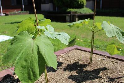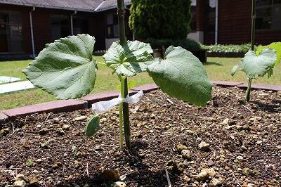 オクラの苗も大きくなっています。現在約15センチほどに成長しました。