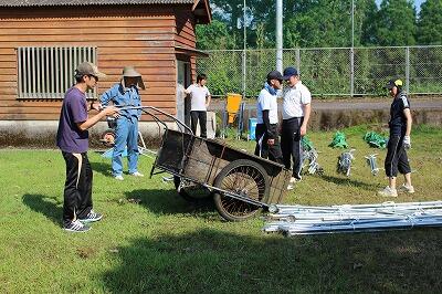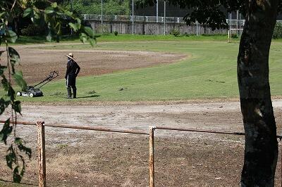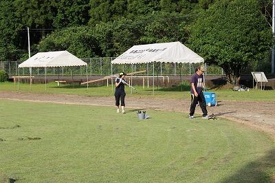SFに向けて運動場の整備が進んでいます。PTAのご協力をいただいてトラックの除草が進みました。教頭先生も草刈りを進めています。また、放課後は、小学校と中学校の職員でテントを立てたり、トラックの整備をしたりしました。SFへの準備は順調に進んでいます。