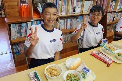 今日の給食のメニューは、「減量コッペパン、きのこスパゲティー、フレンチサラダ」でした。秋はきのこの季節です。旬のスパゲティーですね!