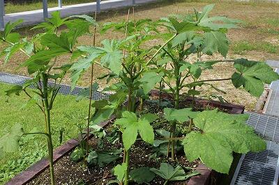 シルバーウィークの間にオクラも大きく育ちました。現在1mほどのなりました。