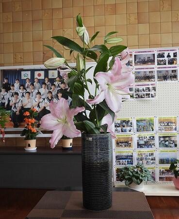 7月9日(水)生徒が自宅に咲いた百合の花を持ってきてくれました。早速、玄関に飾りました。ありがとうございます。