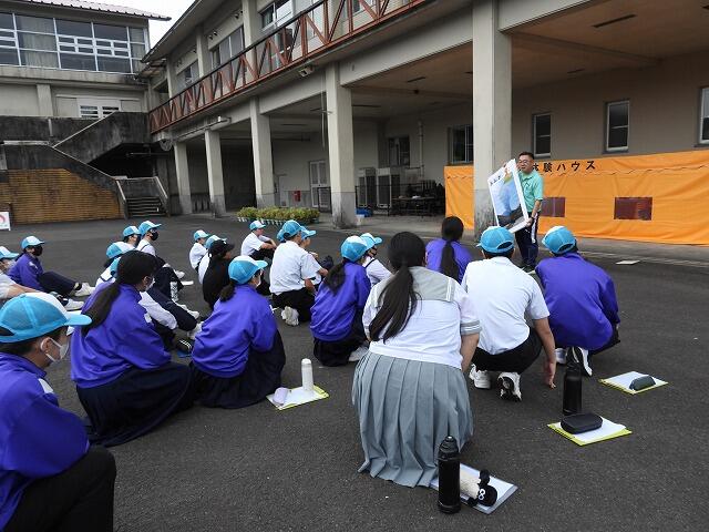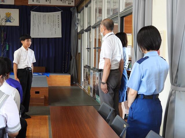 9月5日(金)6校時:都城警察署生活安全課から講師をお招きして、不審者侵入を想定した避難訓練を行いました。不審者が侵入した場合の避難誘導や職員の動きなどを確認しました。講師の方からは、不審者を校舎内に入れないことが最も重要なこと、生徒を避難させたら、教職員も退避行動をとること、避難場所は、第二次・第三次と検討しておくこと等のアドバイスがありました。また、さすまたの使い方も教えていただきました。生徒の安全を考える、大変、学びの多い避難訓練となりました。