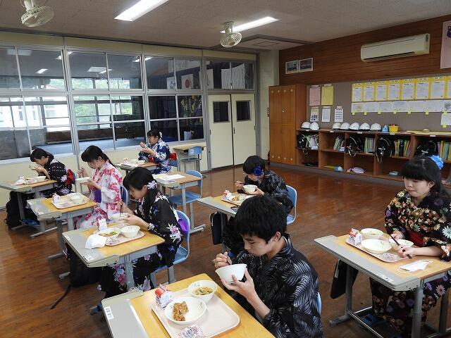 給食も浴衣姿のままいただきました。