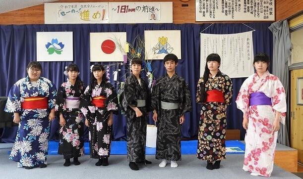 7月18日(金)3年生家庭科の授業で、浴衣の着付けの学習をしました。初めて浴衣に袖を通した生徒も多く、とても楽しそうでした。みんな似合ってるよ‼