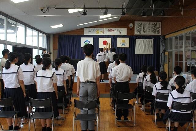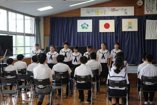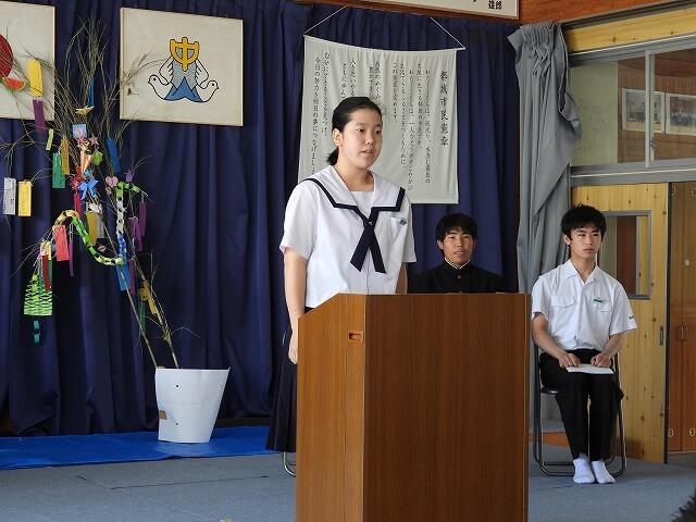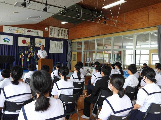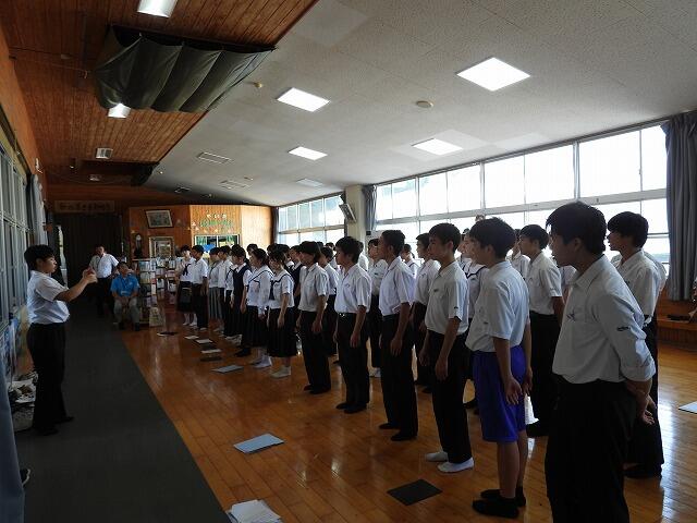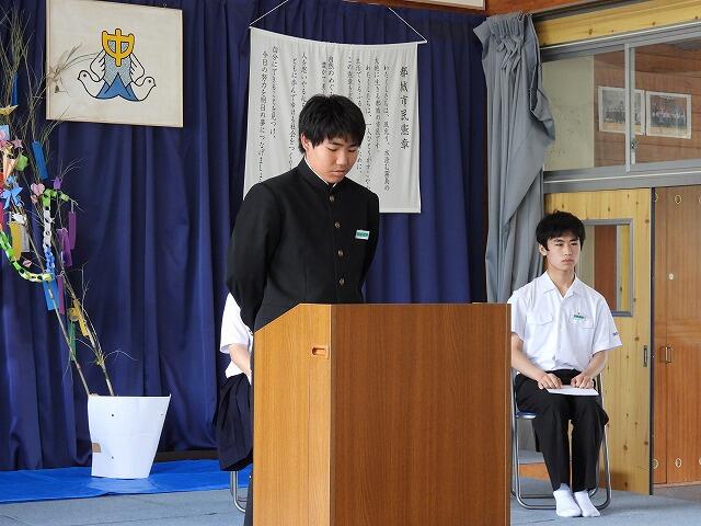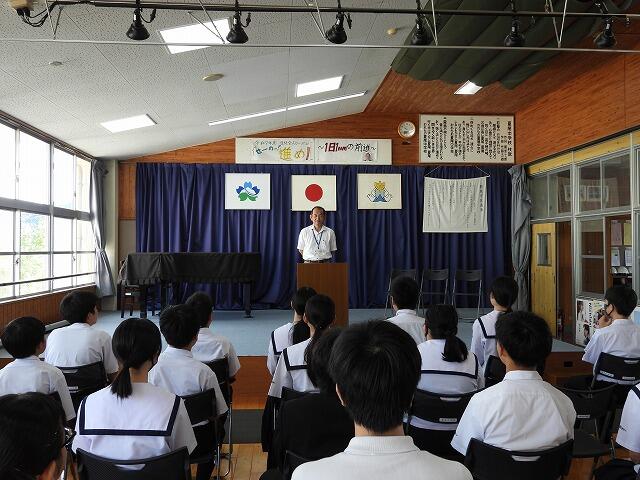 7月22日(火)1学期終業式が行われました。72日間の1学期が終了し、明日から夏休みに入ります。終業式では、各学年の代表者が1学期の反省を述べました。また、校長先生からは、1学期に実施した行事や部活動の活躍を通して、成長が見られたことや充実した夏休みにできるよう目的をもって過ごすようお話がありました。