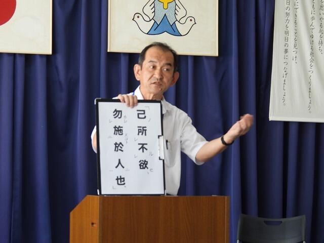 最後に、孔子の論語から「己所不欲 勿施於人」(自分がされて嫌なことは、他人にもしてはいけない)という話をされました。