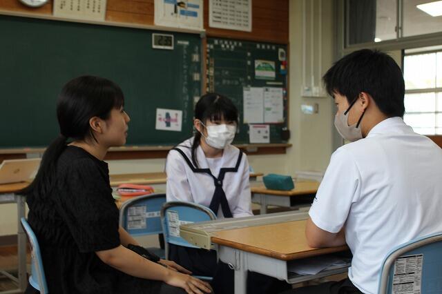 9月1日(月):夏尾中では、SUT(ステップアップタイム)【15:45~16:05】の時間を使って、月に2回程度、社会生活で必要とされる対人関係やコミュニケーションスキルを習得するためにソーシャルスキルトレーニングを実施しています。本日は、3年生が、3名1組で『共通点探しを行い、3分間会話を継続させる』という内容に取り組みました。お互いの共通点を探して、会話を広げていくのに苦労していましたが、会話を続けようと熱心な取組が見られました。
