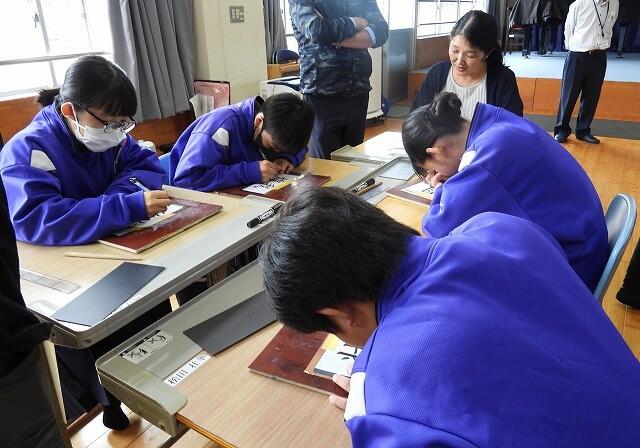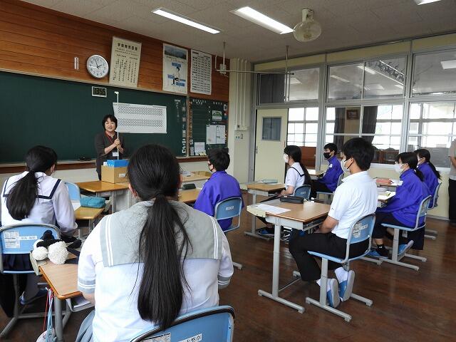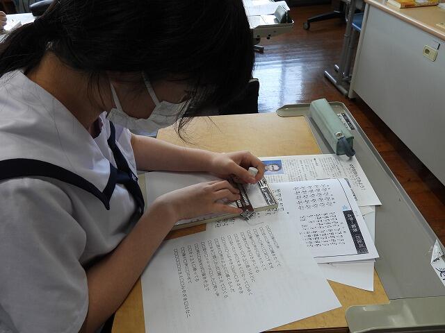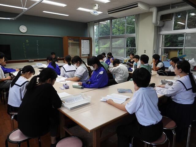 9月11日(木):3年生の総合的な学習の時間、視覚障がい者への理解を深めるために点字体験を行いました。都城市点字図書館より「都城点字・音訳友の会」の5名の講師をお招きして実施しました。点字・点訳の基礎を学んで、実際に点字を打ちました。みんな黙々と作業をする姿が見られました。この体験が、見えない方、見えにくい方への配慮や支援につながることを期待します。