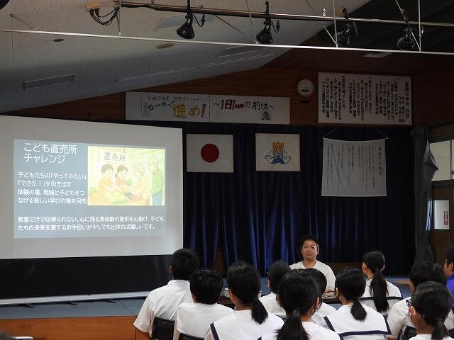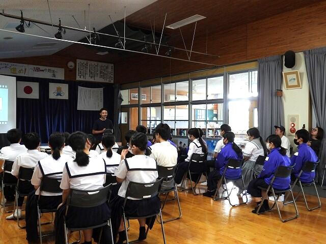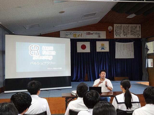 9月8日(月)6校時:宮崎県中小企業家同友会きりしま支部より、『BARIS FLOWER』代表の前田和範様、映像制作会社『YOYE』代表の古木洋平様をお招きして、「夢見る課外授業」を開催しました。お二人とも過去の経歴や都城市で会社を創業した転機となった出来事などを話してくださいました。地元で活躍されている創業者の方々の貴重なお話を聞く良い機会となりました。