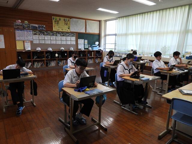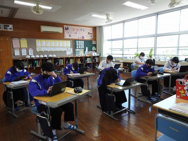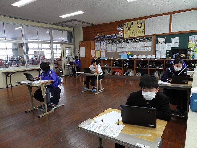 12月4日(木)・5日(金):1年生を対象に『みやざき学習状況調査』をCBT(コンピュータを使って実施される試験)で実施しました。時間いっぱい取り組む姿が見られました。