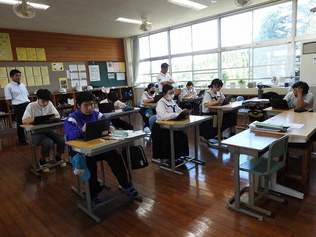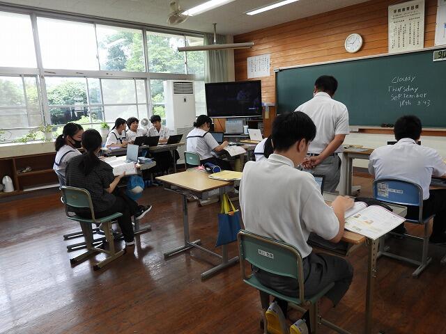 9月18日(木):都城市の重点取組である「子どもが主役の授業」を進めるために、英語科では、複線型の授業を行っています。同じ教室内で複数の学習活動や学習内容が同時に並行して進められる授業形態です。生徒一人ひとりが自分の興味・関心や理解度に合わせて学習内容や方法を主体的に選択し、個別最適な学びや協働的な学びを進めることができます。2年生英語では、一人で課題に取り組む生徒、複数で取り組む生徒、先生と課題に取り組む生徒などが見られました。今後も、個別最適な学びを進めていきます。