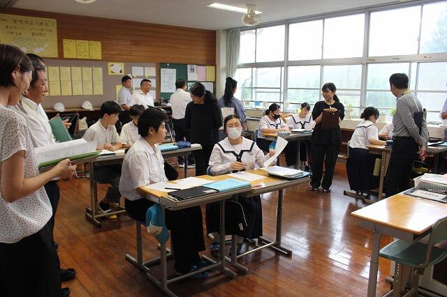 9月24日(水):都城市教育委員会・南部教育事務所から、教育委員・指導主事の先生方5名をお迎えして支援訪問を実施しました。夏尾中学校の現状について説明した後、授業や給食・清掃の様子などを参観されました。午後は、授業研究会を行い、「生徒が主役の授業」についての指導や助言をいただきました。先生方の学びの多い1日となりました。