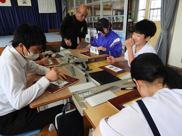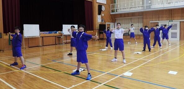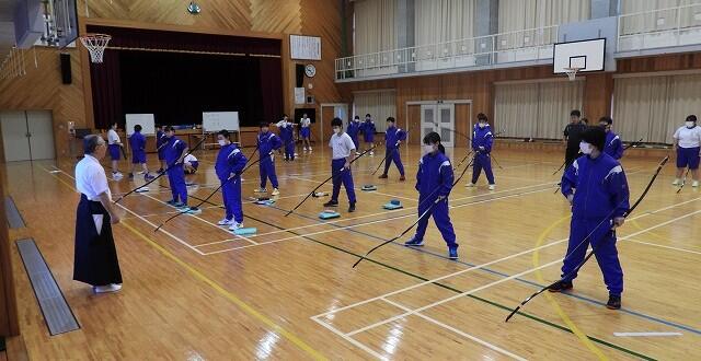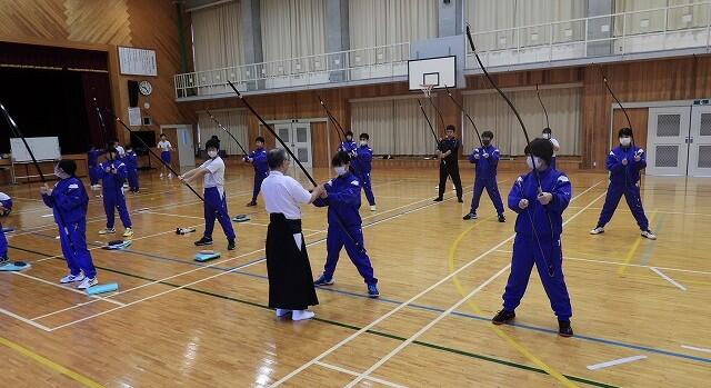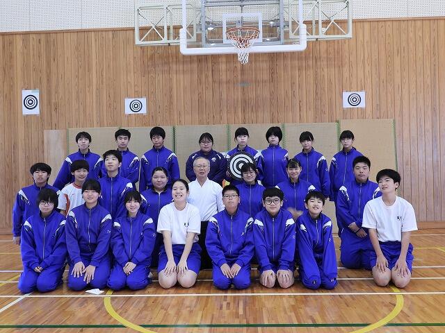 10月23日(木):夏尾中では、保健体育(武道)で、宮崎県弓道連盟会長の重信和行先生をお招きして弓道の授業を行っています。本年度も、5回計画されており、今日は2回目になります。専門の先生の指導で、弓道の所作や武道の精神について、多くのことを学んでください。